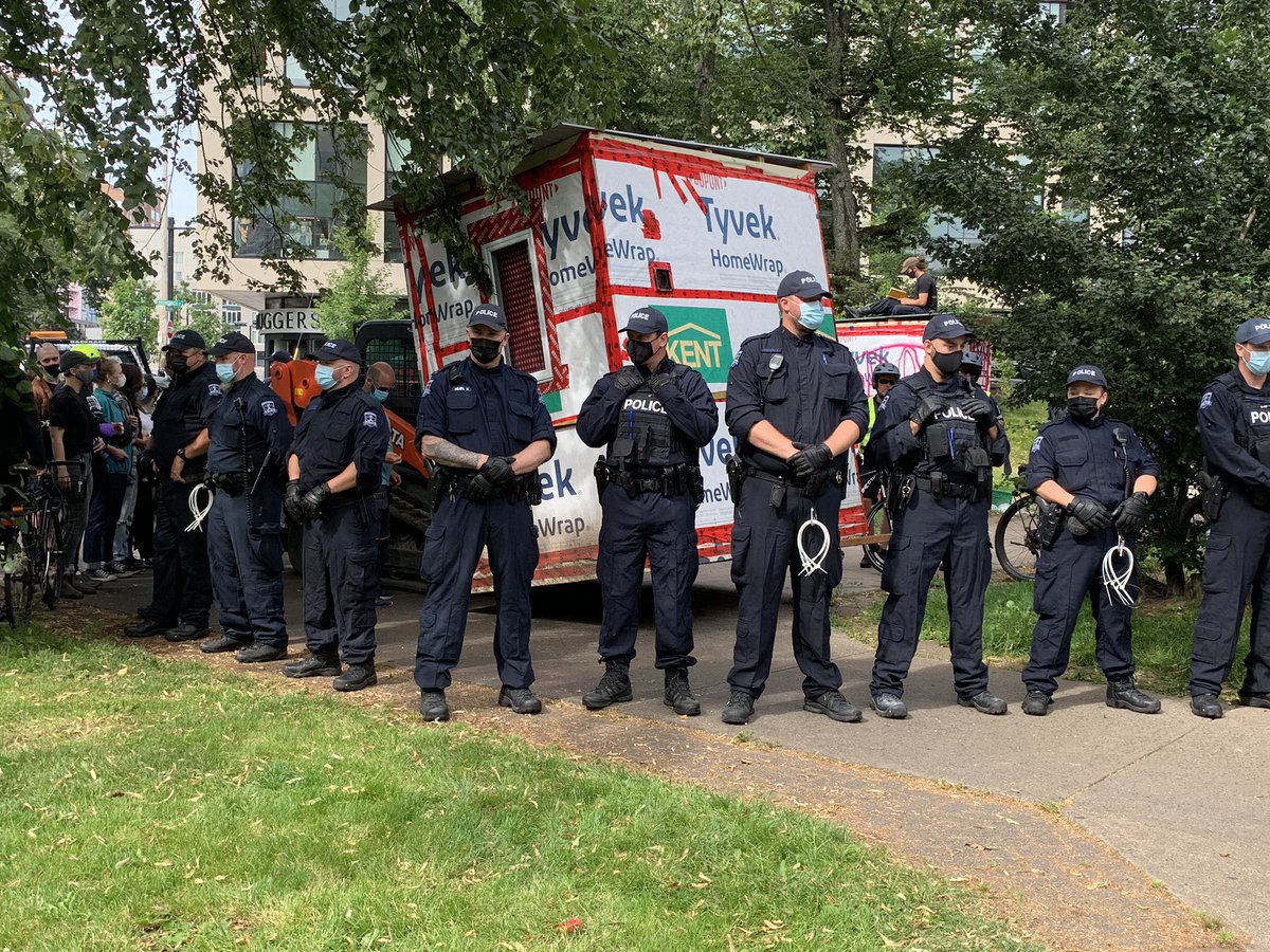 I had to step away, but please follow my colleagues @AlexaMacLean902, @zwoodford, @Nicole__Munro and @lynds_armstrong for full coverage of the forcible removal of the temporary shelters.