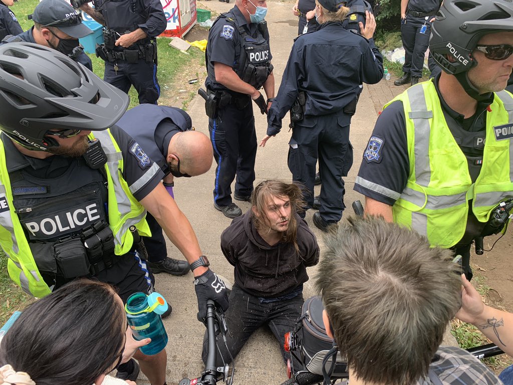 Just watched police arrest an individual who was protesting on a truck. They dragged them off the truck, arrested them, then dragged them to a different location once a crowd gathered