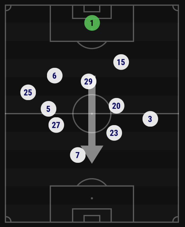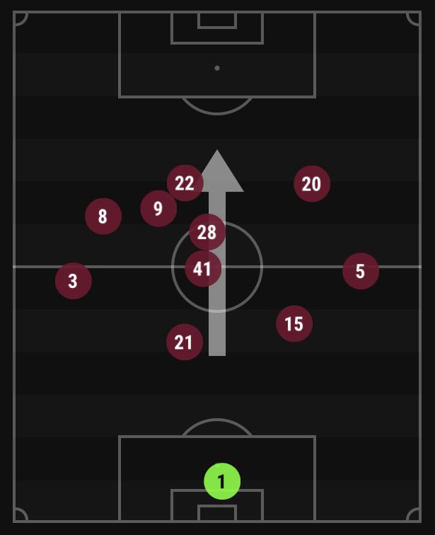 Benrahma’s average position was the furthest forward and most central in the WHU team, playing a very similar role to Lingard last season. Antonio had the tendency to drop deeper at times, which benefitted Benrahma by giving him the extra space to make promising forward runs.