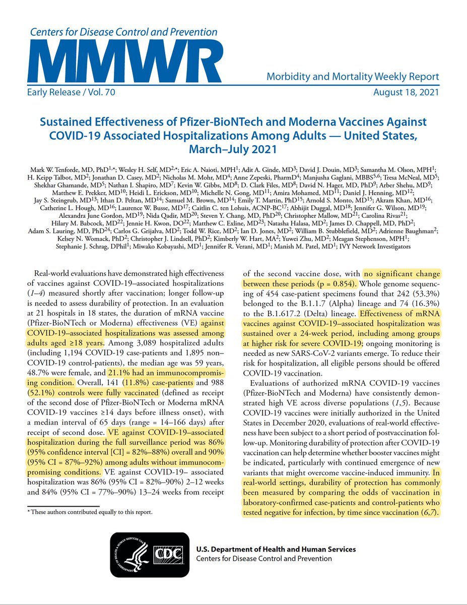 5/ However, the vaccines were less protective against hospitalization among immunocompromised persons, which supports plans to give these patients additional doses of vaccine to optimize their neutralizing antibody responses.