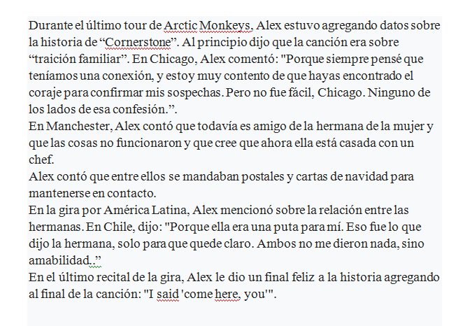 La séptima canción de Humbug es "Cornerstone". La descripción de la historia de la canción acá.