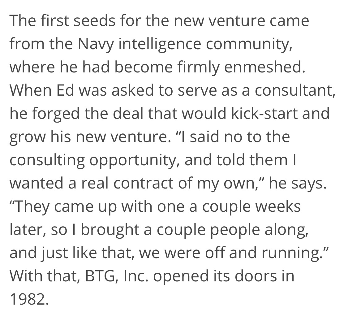 “Largely through these contracts, BTG has grown at a remarkable rate -- from $27 million in sales in 1992 to projections of $600 million by the end of this fiscal year, which concludes March 31, 1997.” washingtonpost.com/archive/busine…
