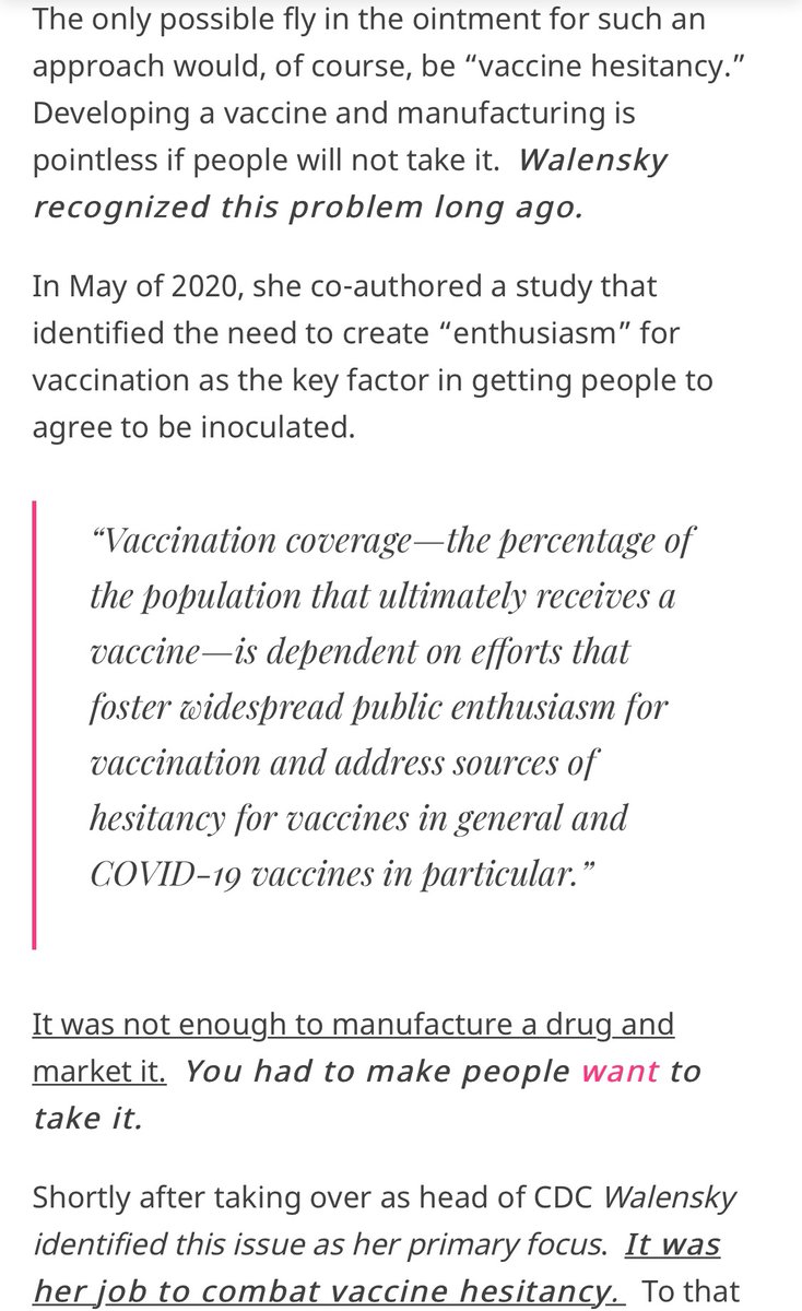 DARPA funded experts at CDC Director Rochelle Walensky’s frmr employer Mass General admitted in a NYT oped that vaccine boosters being rolled out now are futile as a game of whack a mole, & promoted new vaccine development