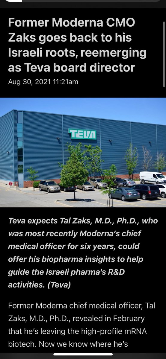 DARPA funding also built up the research of Israeli Chief Medical Officer at Moderna, Tal Zaks who has just absconded to Israeli pharma Teva with the fruits of US taxpayers