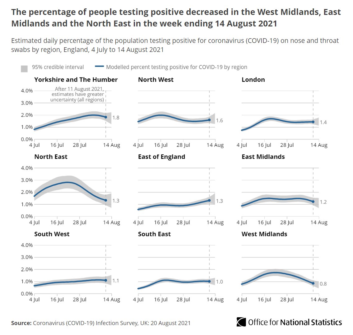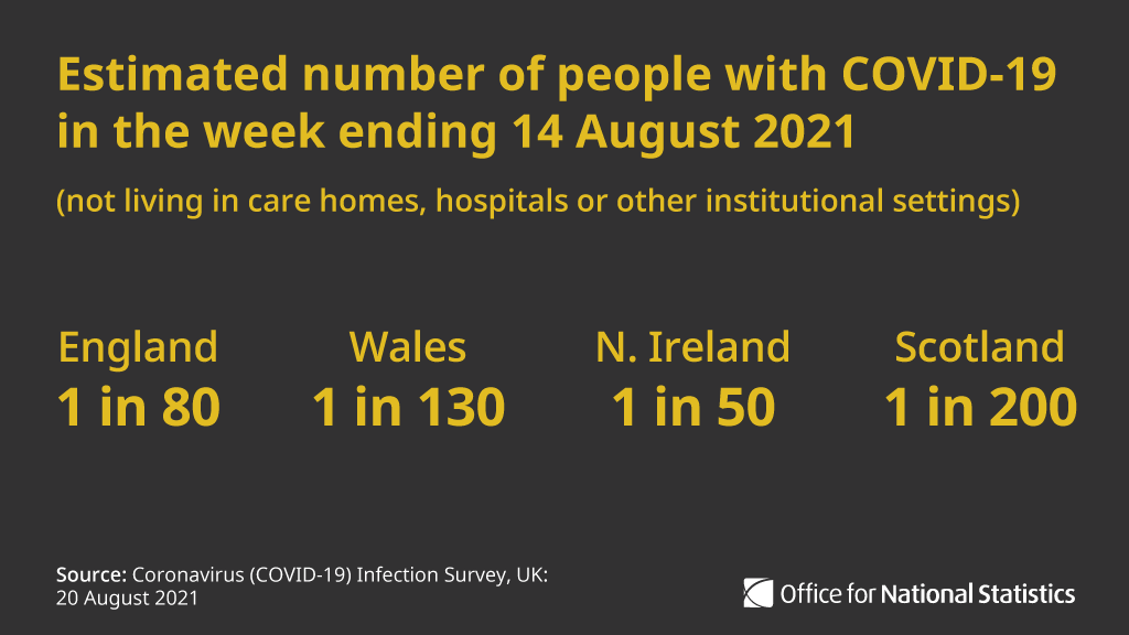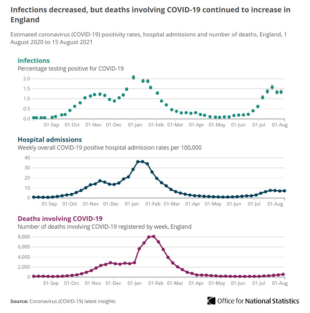 #COVID19 infections in the week ending 14 August 2021 continued to be higher than the corresponding week in the second wave (end of November 2020) in England.