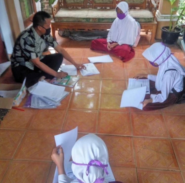 Setiap hari, ia menyambangi rumah-rumah muridnya dan membawa satu tas penuh berisi kertas-kertas fotokopi buku pelajaran sekolah dasar serta sejumlah masker untuk dibagikan pada muridnya.