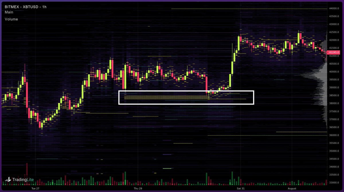 Whale sets a ton of orders at $38.3k to $38.5k.