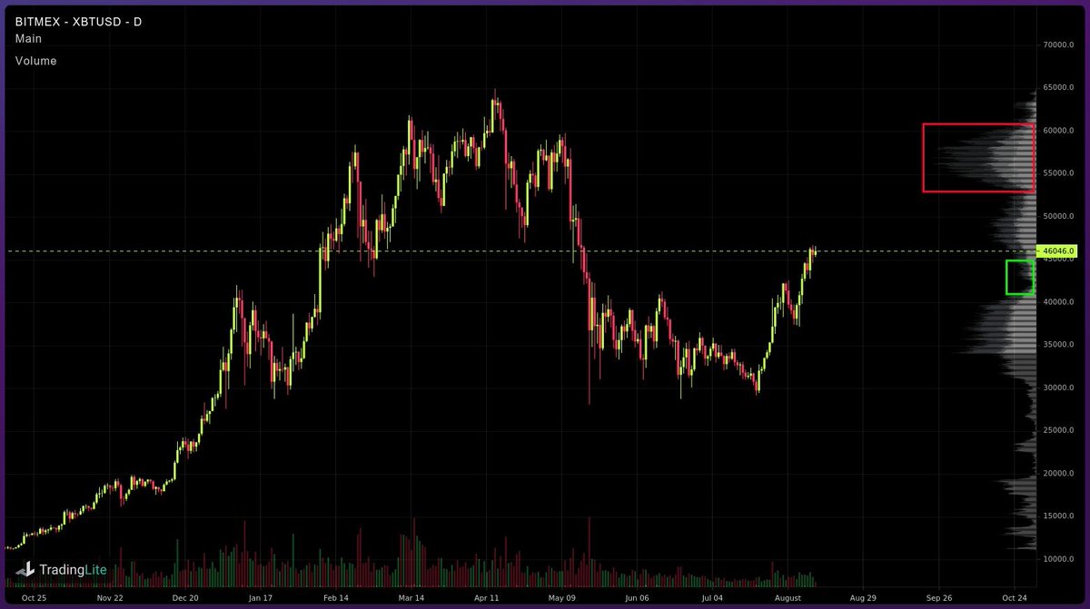 The Red box is a high volume region. Lots of trapped Supply, and it’s going to be MUCH harder for the price to break through.