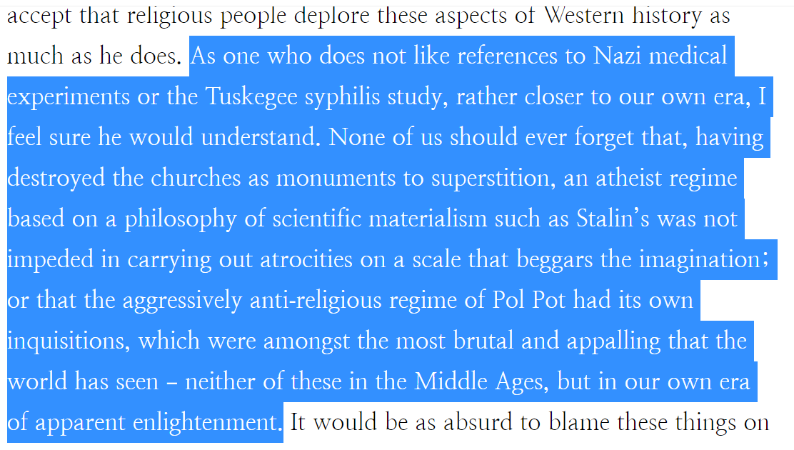 The result of the enlightenment movement was a suppression of the right hemisphere, and as McGilchrist pointed out in a reply essay to @sapinker, this atheistic suppression led to the worst atrocities in human history.