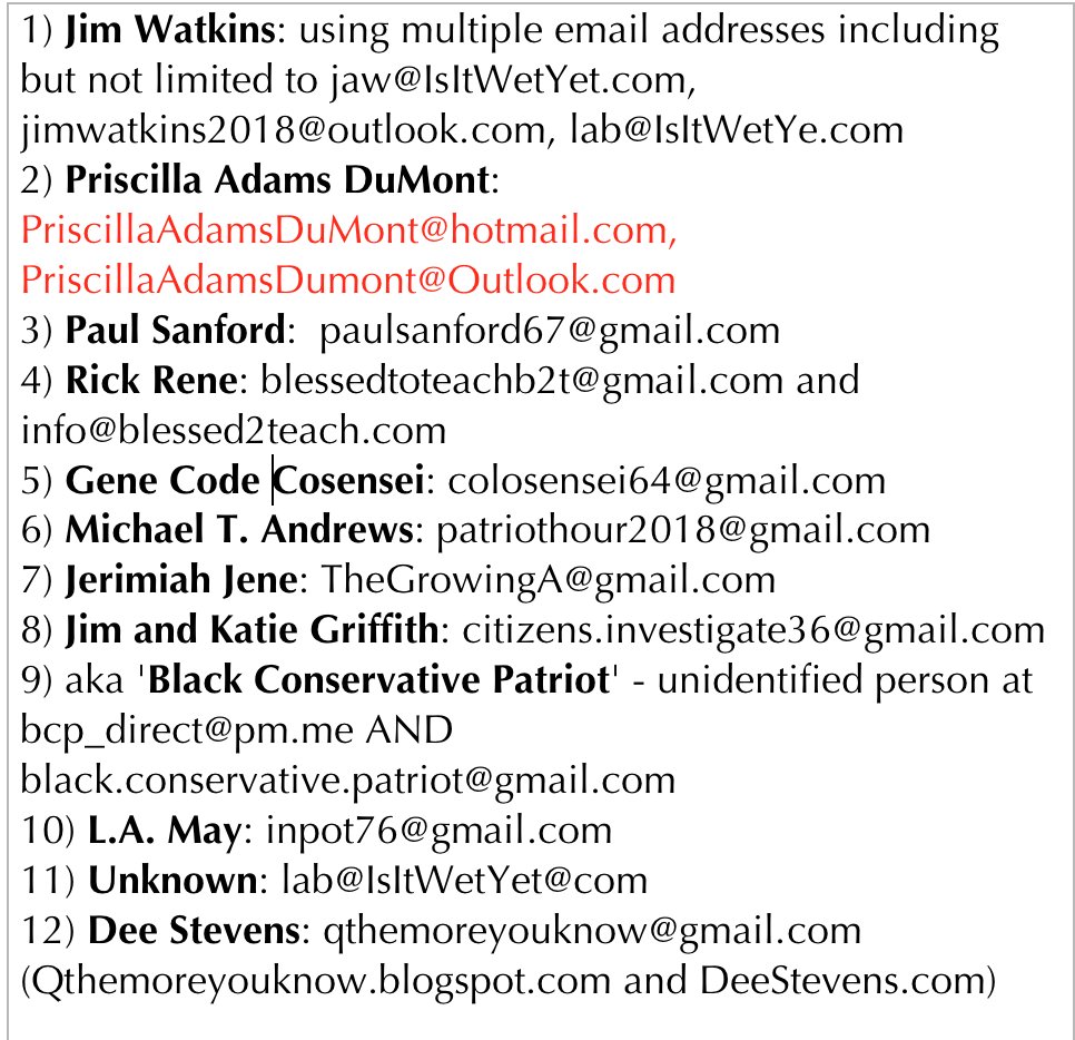 One of the emails in the 'Group Email' with Jim Watkins, Priscilla, Rick Rene et al shown in above Thread is 'Black Conservative Patriot' (bcp_direct @ pm.me), shown here.