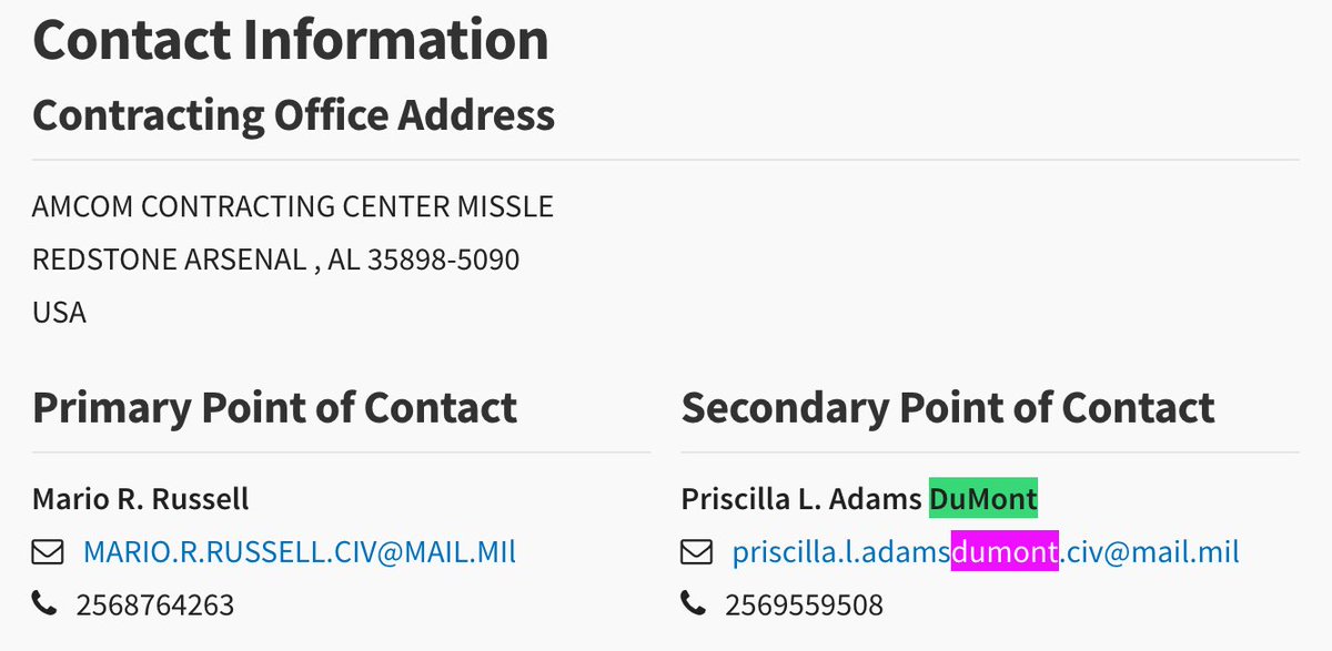 Because Priscilla's been a high ranking U.S. Government employee at REDSTONE ARSENAL, tied to MO BROOKS and JIM WATKINS.