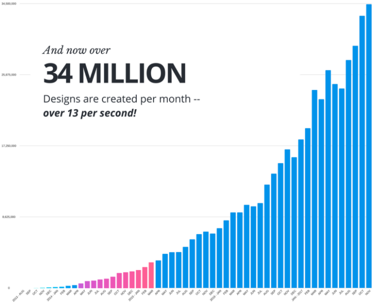 17/ Not even 2 years in, they reached over 1MM users and 3MM designs per month in October of 2014.