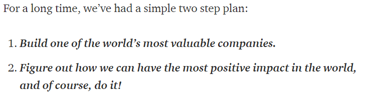 The CEO/COO power couple has pledged to donate their entire fortune. Step #2 in a 2 part plan.