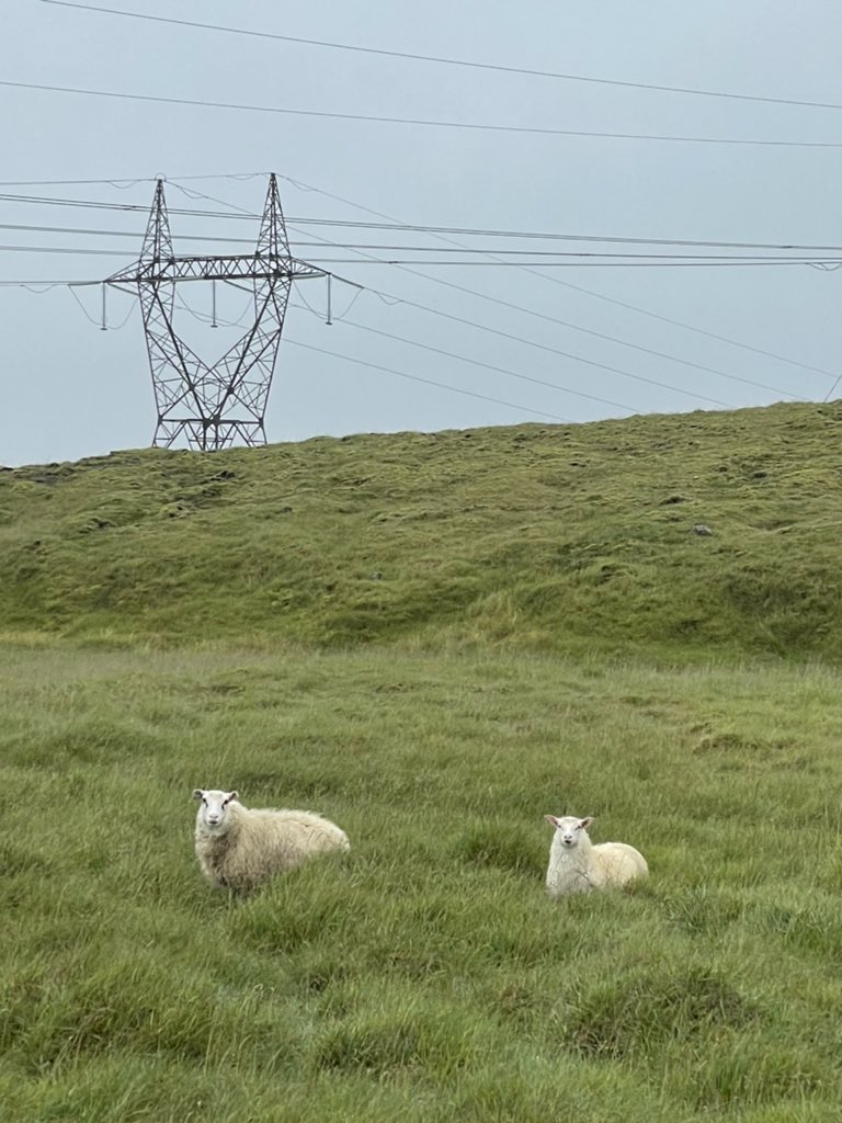 A geothermal plant, a CO2 sequestration site, a transmission line with sheep, and wind/rain/fog. Iceland.