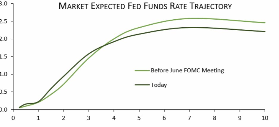1. The expected trajectory for the FFR rotated (higher rates in years 1-3, a lot lower after (i.e. the mkt doesn't believe in FAIT at all).