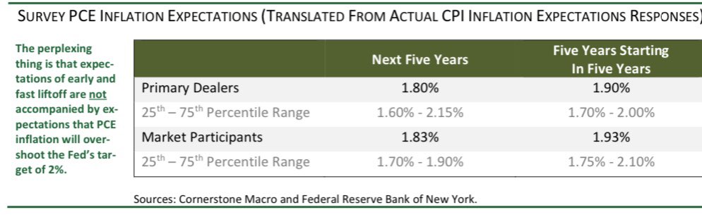 What is perplexing is that investors believe in early/fast liftoff despite seeing PCE inflation not even at target as a base case for the next 5 years or the subsequent 5 years.