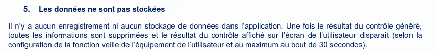 ➡ « la personne doit être informée préalablement à leur mise en œuvre » ; je suis curieux de savoir combien d'utilisateurs de l'application ou de personnes à qui on scanne le pass sont au courant de cette collecte mentionnée en petites lignes dans un document externe.