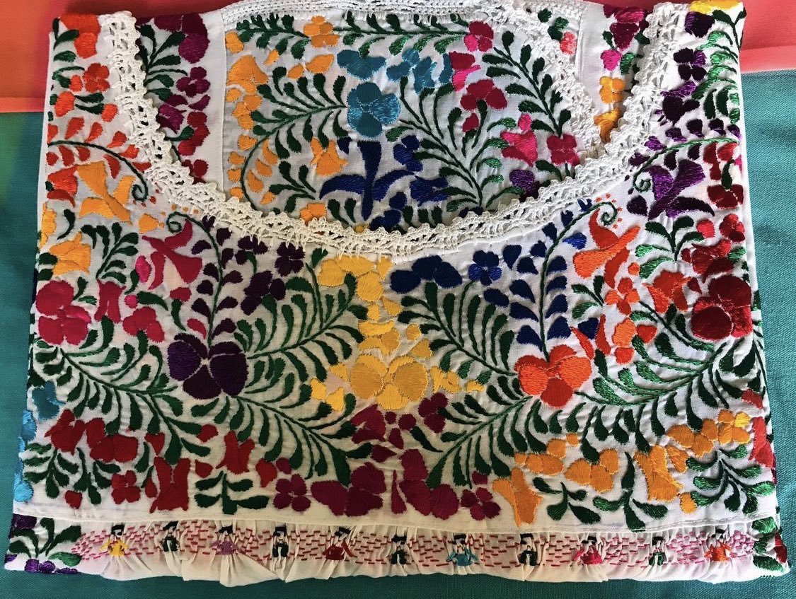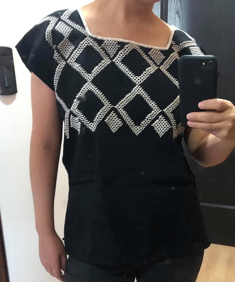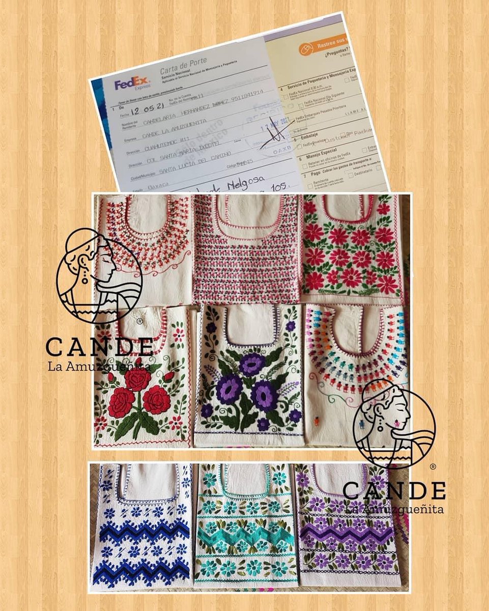 Ursula Narciso con la ayuda de su nieta ofrece blusas y huipiles elaborados en telar de cintura y bordado a mano con la iconografía representativa de la región chinanteca de San Lucas Ojitlan Oaxaca, ♥️