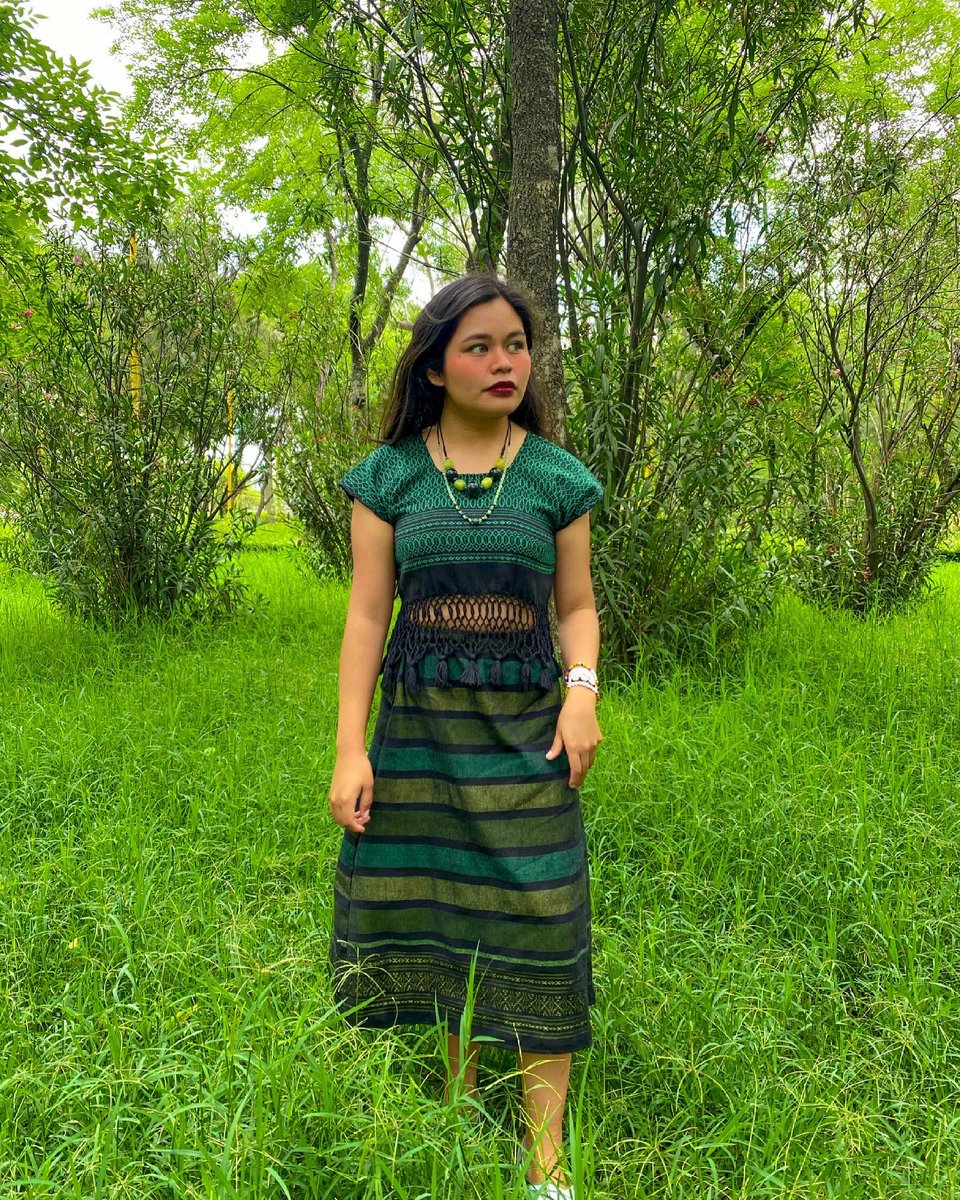 Diana Montejo, originaria de Amado Nervo, Yajalon, Chiapas, perteneciente a la cultura Maya Ch'ol. Junto con su familia de 30 artesanas dedicadas al rescate de su indumentaria elaboran blusas, vestidos, tiras y lienzos de bordado.