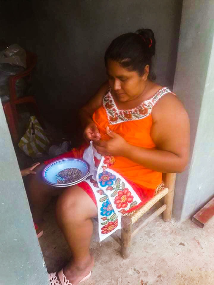 Ely Lopez , artesana de bordado con chaquira de Cochoapa , municipio de Ometepec en la costa chica de Guerrero . ♥️