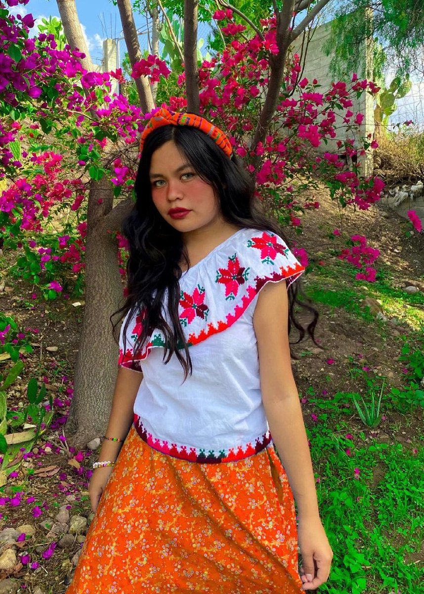 Flores de mi pueblo-Originarias de la comunidad de San Jerónimo Zoochina, en la Sierra Juárez de Oaxaca, elaboran prendas de manta bordadas a maquina de pedal y a mano♥️en este proyecto participan varias familias de la comunidad.
