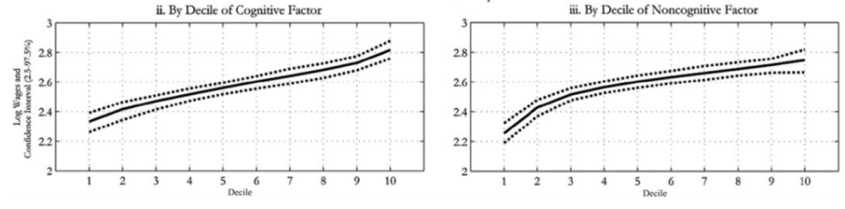 1. Las personas con más habilidades cognitivas (izquierda) y no cognitivas (derecha) en la niñez tienen mayores salarios en su adultez