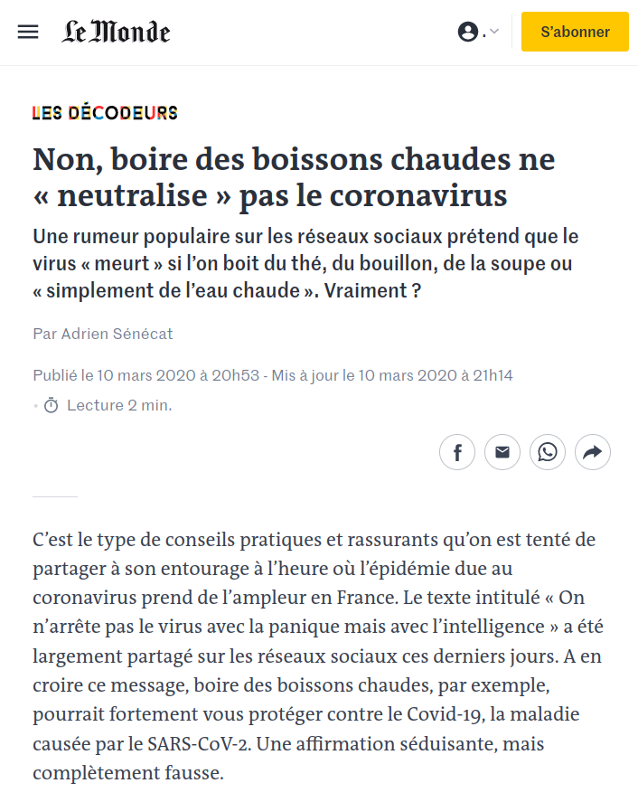 Et du coup, on oublie que, justement, l'info de qualité existe généralement, mais qu'elle est occultée, parasitée par la masse d'intox qui circulent.