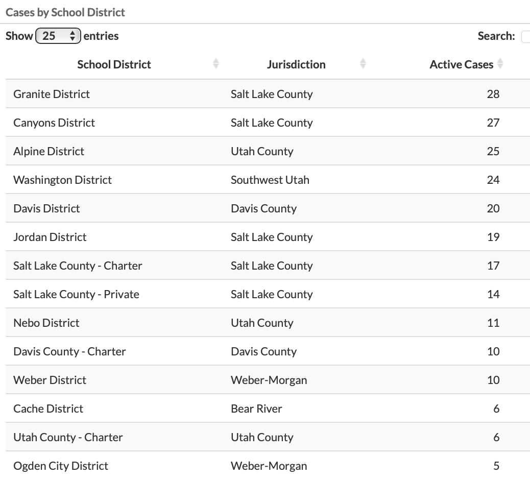 Here are the cases by school district so far this year. I’ve also calculated the rate per 100k population (although I had to use 2019 enrollment numbers). And I don’t know how to calculate the charter enrollment. #utpol