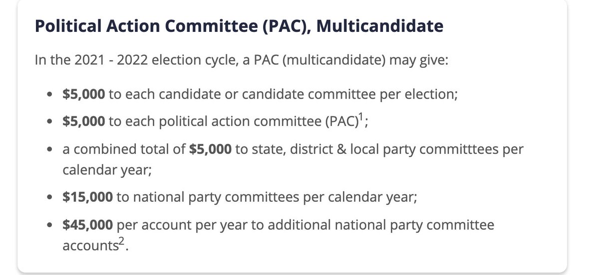Max contribution is 5,000 USD per candidate per election. Not too expensive.
