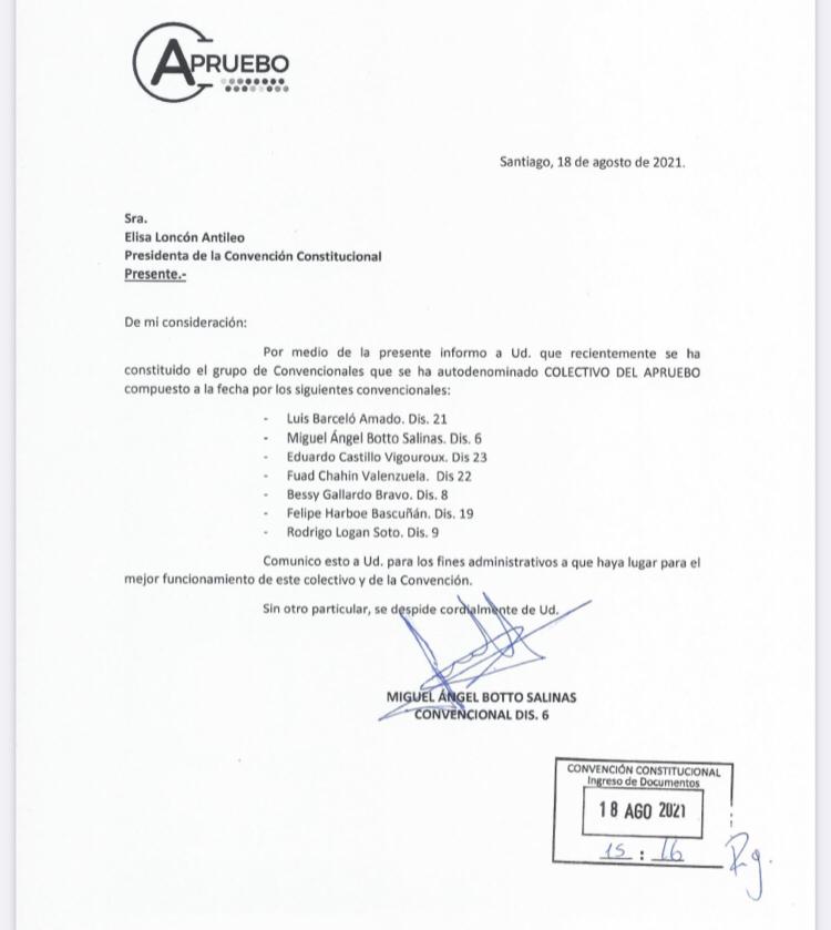 📌Una comunicación de los convencionales constituyentes Gallardo, Botto, Harboe, Barceló, Logan, Castillo y Chahin, por la cual informan a la Convención, que se han constituido en el colectivo denominado "Colectivo del Apruebo"