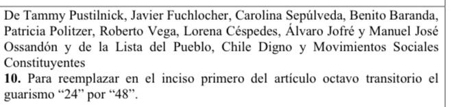 🗳️Votación enmienda nº10 para reemplazar en el inciso primero del artículo octavo transitorio el guarismo “24”por “48”