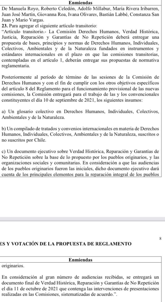 🗳️Votación enmienda nº23 solicitada por convencionales de la comisión de DDHH (pg. 7 y 8 del documento)