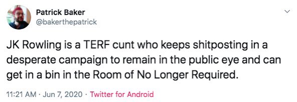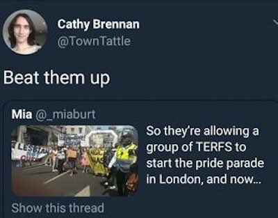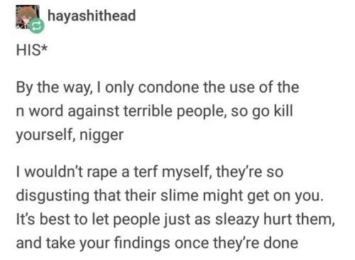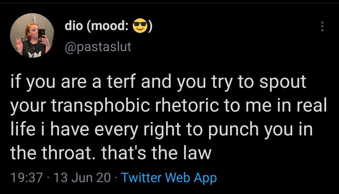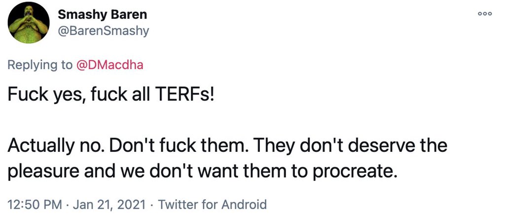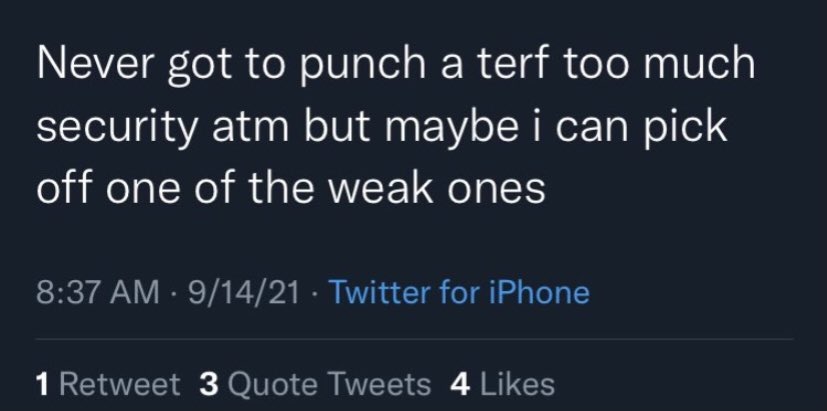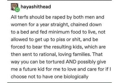 Nothing to see here. Just someone casually talking about ‘raping TERFS’