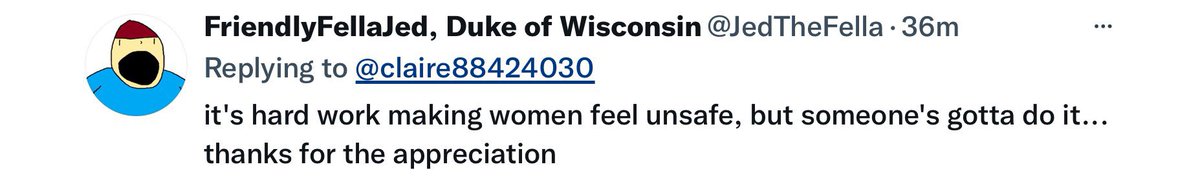 The argument ‘not all men’ is meaningless. Nobody is saying/nor have they ever said ‘All men pose a risk to women’