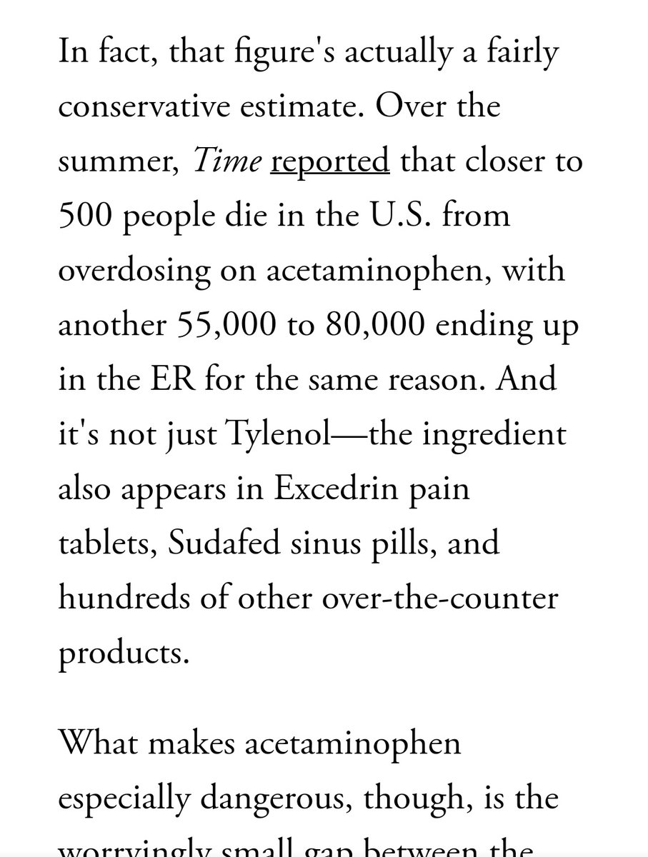 "500 people die in the U.S. from overdosing on acetaminophen, with another 55,000 to 80,000 ending up in the ER for the same reason"