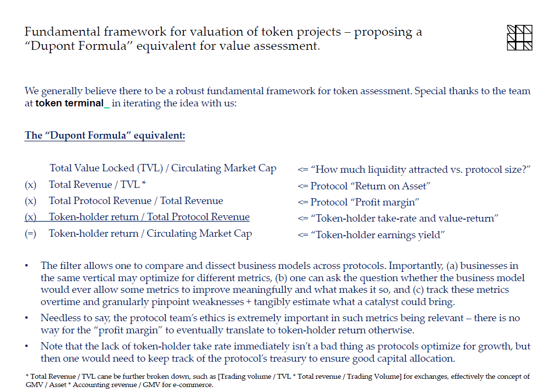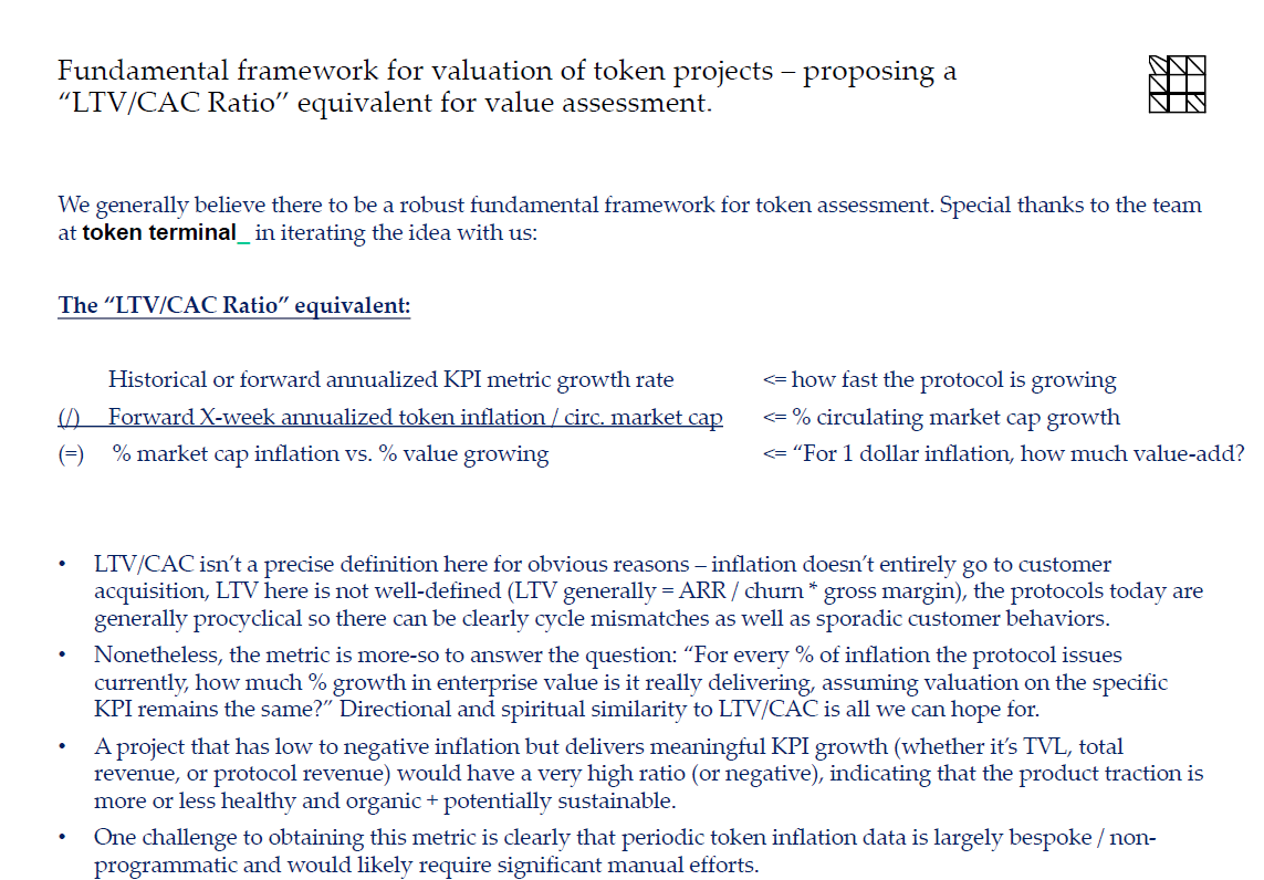 (13) We generally feel the equivalent of Dupont formula and LTC/CAC should exist in crypto fundamentals analysis and took a crack at it. Projected key metric growth vs. circulating supply growth as a ratio may be one of the highest alpha signals.