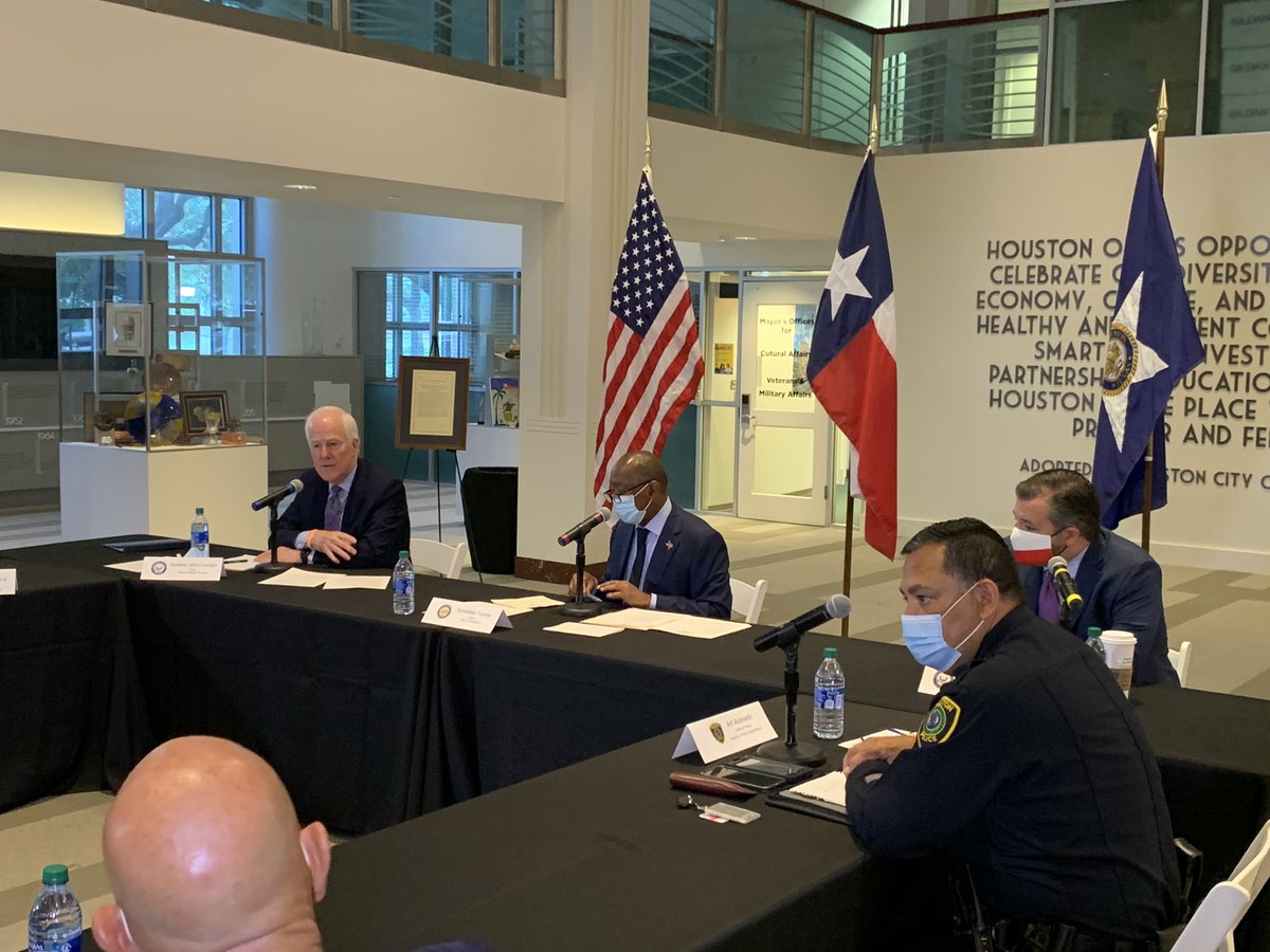 Police reform roundtable involving Cornyn, Cruz, Turner and a bunch of others getting underway just now at City Hall #txlege