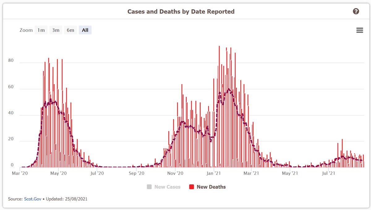 Scotland does still have the lowest 7 day case rate in the UK, although these figures do lag behind a little, so the increases seen in the past few days may not be fully reflected here yet.