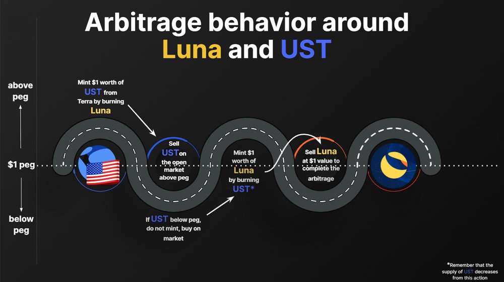 - Price volatility of UST is transferred onto Luna fluctuating supply.