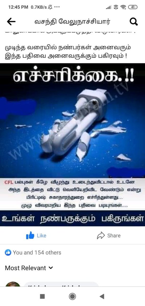 ஏனென்றால் இந்த பல்புகளுக்குள் உள்ள மெர்க்குரி திரவம் , ஆர்சனிக் , துத்தநாகத்தைவிட அதிக விஷத்தன்மையுள்ளது .