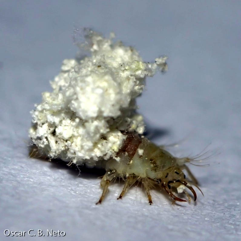 As larvas de bicho-lixeiro, Chrysopidae, carregam detritos em seu abdômen, inclusive restos de suas presas, por isso as chamam de bicho-lixeiro. Mas nem todas as larvas de Chrysopidae fazem isso, algumas podem estar nuas.
