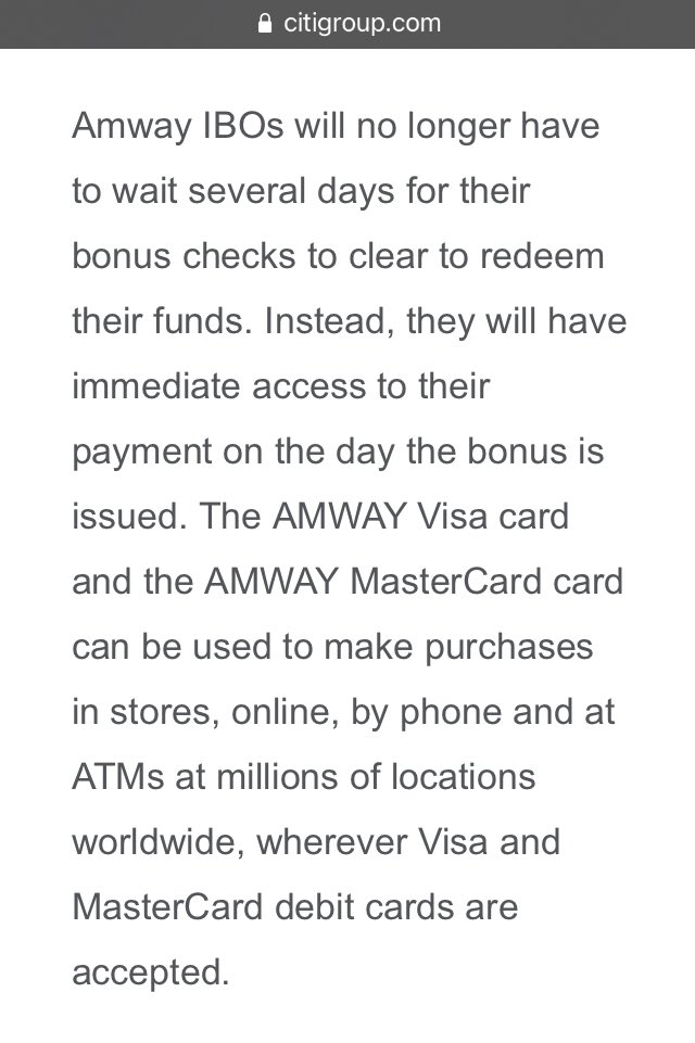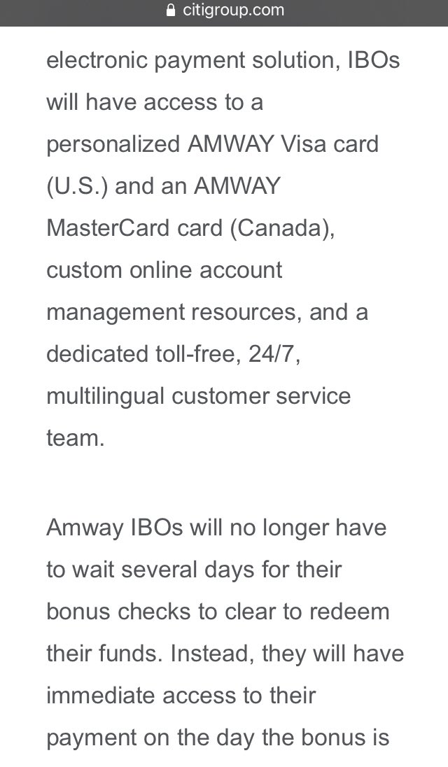 Before we move on to step three, let’s first confirm this March 2012 press release from Citibank touting their prepaid Visa cards used to send commission payments to Amway victims.