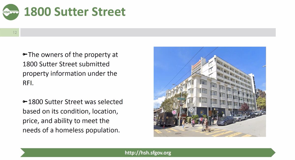 Cohen: The Buchanan Hotel at 1800 Sutter Street has characteristics that are good for conversion to housing, like private bathrooms, a high quality building, and proximity to public transit. It's currently a shelter-in-place hotel.