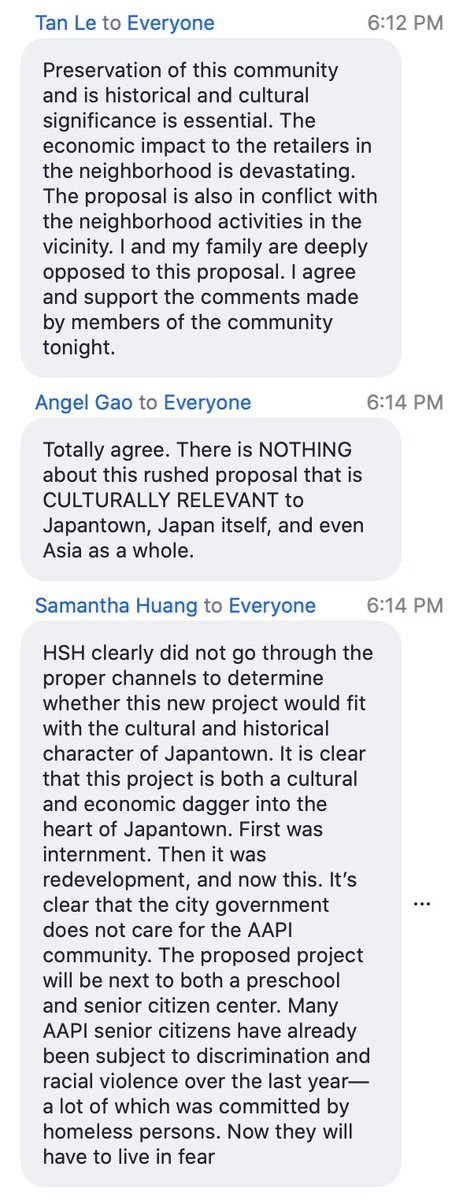 Speaker 22 is Japantown Community Benefit District ED Grace Horikiri. Staff at the hotel would lose their jobs, and many legacy businesses would not be able to hang on w/o the hotel. And the community worries about backlash from raising their voices.