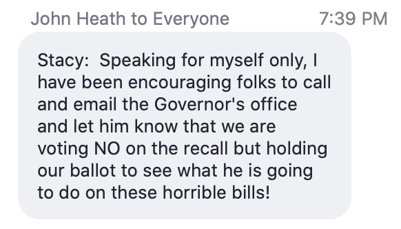 One commenter says they are holding their recall ballot because of SB 9 and SB 10.