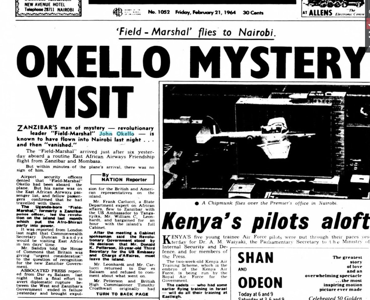 4/ On 20 Feb Okello made an unannounced trip to Kenya, arriving on a commercial flight to Mombasa. Within a few days he was said to be in Uganda.