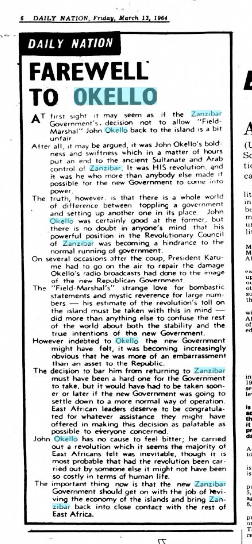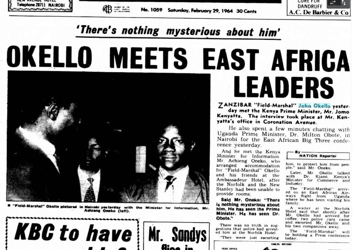 14/ John Okello was a key figure in eastern Africa's political history: a threat to the cloistered power of Nyerere, Kenyatta, Banda & Obote.