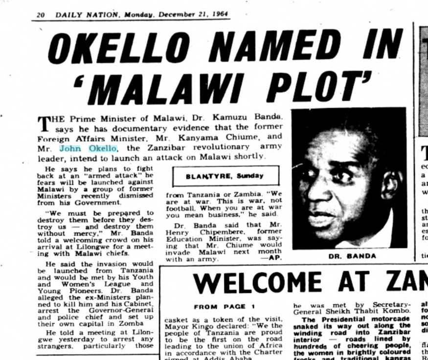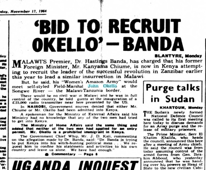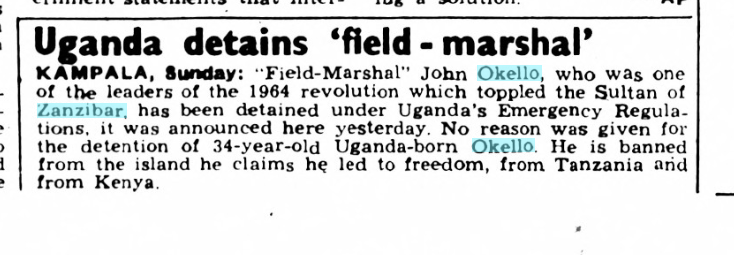 The Kenyan papers were fascinated with Okello: early reports held him to be a Kenya citizen.