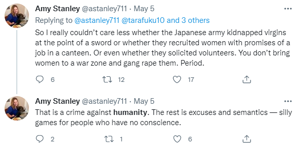 Stanley not only justifies the US commanders’ decision in Le Havre and Okinawa, but also perpetuates the rape of local women that is probably considered as crimes against humanity by her definition. #現地女性強姦制度#LocalWomenRapeSystem