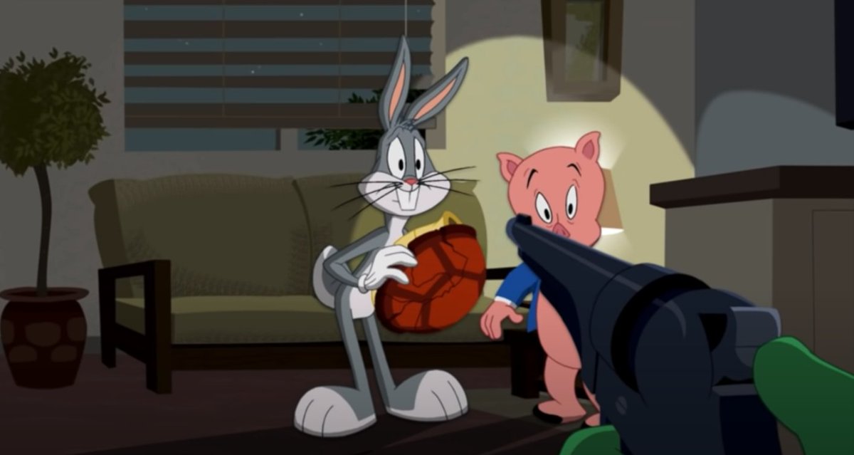 So I was randomly watching a scene from the Looney Tunes Show where Cecil Turtle points a gun at Bugs & Porky.
